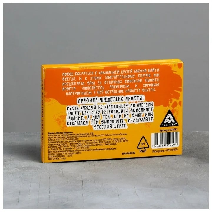 Купить игра для компании "фанты буханты" 20 карт от 100 руб. с доставкой до пункта выдачи в Дрезне. Интернет магазин ДекаМаркет. Оплата при получении.