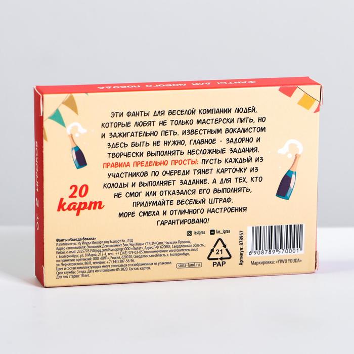 Купить игра для компании "фанты звезда бокала" 20 карт от 120 руб. с доставкой до пункта выдачи в Дрезне. Интернет магазин ДекаМаркет. Оплата при получении.
